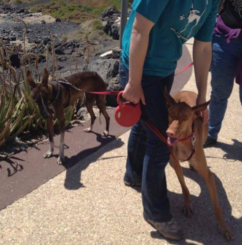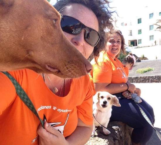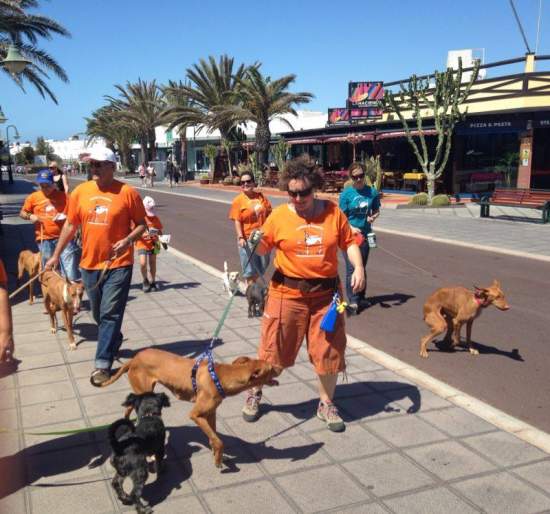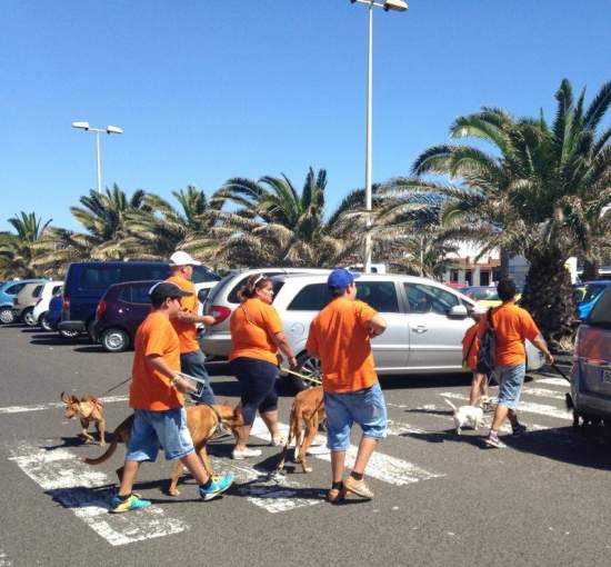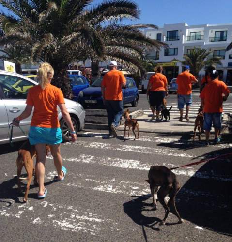 Today it was Costa Teguise’s turn. 11 volunteers and 9 of our dogs participated, especially our wonderful podencos, so that they can see all the great companions that they are and that they are not only good for hunting.